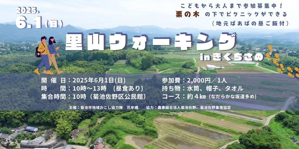 2025/05/26つなぐ棚田遺産にも選ばれた佐野の棚田と栗山を一緒に歩きませんか? お昼ご飯は栗の木の下でピクニックをします! 里山の風景を楽しみながら歩きましょう!!