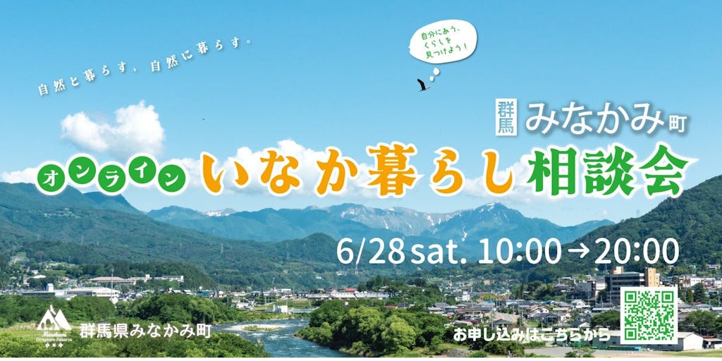 2025/06/25みなかみ町ではオンライン移住相談会として、みなかみ町の移住者の先輩とオンライン上で話すことができる無料相談会を行なっていますが、5月開催に続き、6月も「いなか暮らし」をテーマに、地方での暮らしや田舎での生活をお伝えするオンラインの相談会を開催します。