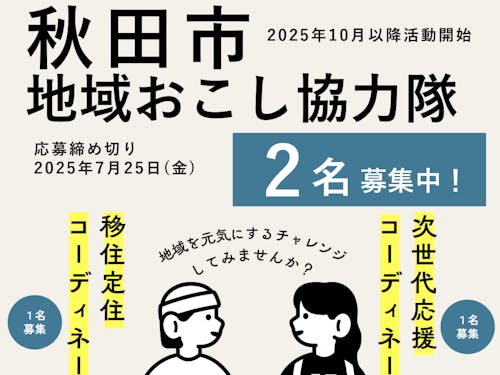 秋田市では、令和7年10月以降に活動を開始する地域おこし協力隊を募集します。