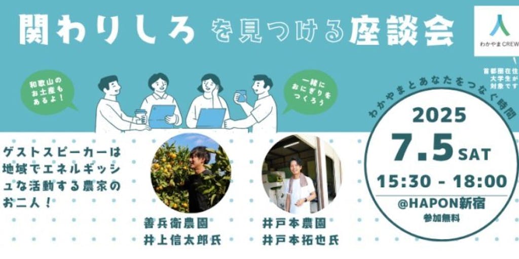 【東京開催】和歌山の“関わりしろ”を見つける座談会|大学生×農業・地域のリアルを知る交流イベント