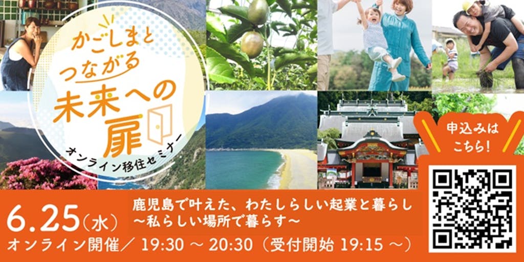 6/25(水)【かごしまとつながる未来への扉】オンライン移住セミナー#1『鹿児島で叶えた、わたしらしい起業と暮らし~私らしい場所で暮らす~』
