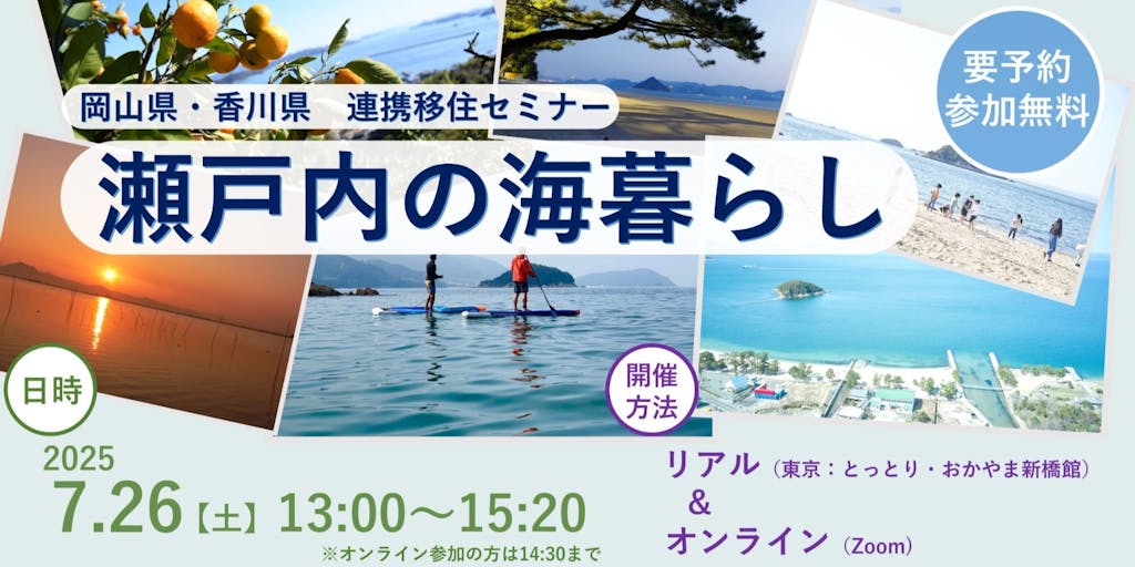 【岡山県】7/26(土)開催|岡山県・香川県連携移住セミナー「瀬戸内の海暮らし」