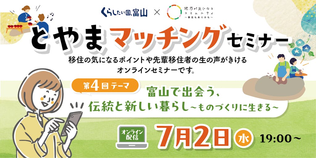 今回のセミナーでは、伝統を受け継ぎながらも、新たな価値を紡ぎ、富山で“つくる暮らし”を始めた先輩移住者がゲストです。