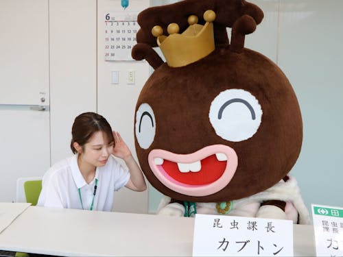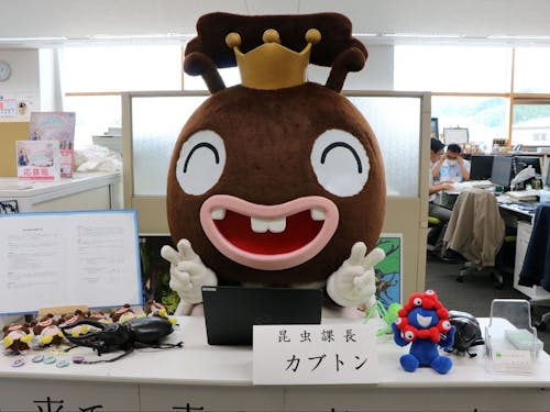 その中でもカブトン課長は、昆虫に関する魅力発信、交流人口拡大のため全国で開催されるイベントへ足を運びPRしています。そのため出張が多くオフィスにいることは稀だとか。もし市役所内で出会えたらとってもラッキー!