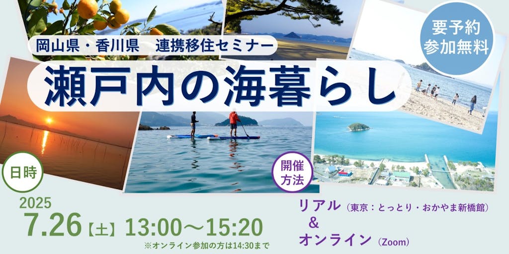 岡山県・香川県初の合同移住セミナー「瀬戸内の海暮らし」を7月26日(土)に開催します!!
