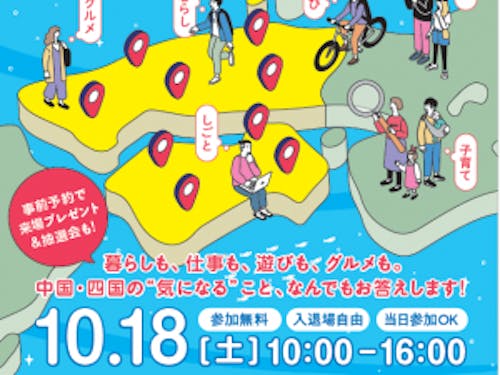 ※ 参加したい方はまずこのページの「興味ある」 または「応募したい」ボタンを押してください! ◎ 事前予約:外部リンク『中国四国共同移住・交流フェア実行委員会事務局』 → https://fsf2025.jp/ (イベントの詳細も、コチラをご参照下さい。)