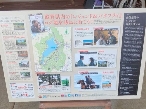 長浜市指定文化財になっている新御座という部屋で、信長、家康、光秀の3人が会話をするシーンが撮影されたそうです。 この映画では、織田信長を木村拓哉さんが演じられました。 お寺の中にも、カッコいい映画のポスターなどが展示されておりました。