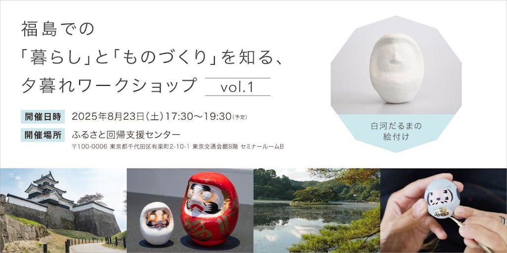 第1回目となる今回は、”白河だるまの絵付け体験”とともに、福島をより深く知るためのセミナーをお送りします!
