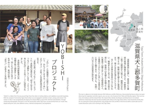 【YOBISHIプロジェクトの「よびし」とは??】 「よびし」とは親戚やご近所さんを招いて、おもてなしをする「よりあい・よびしゅう」が訛った多賀町周辺の方言です。 「多賀の食べるをつなぐ」をコンセプトに、多賀町の食文化を、「知る、伝える、つなぐ」活動をしています。3年前には文化庁100年フードに認定されました。