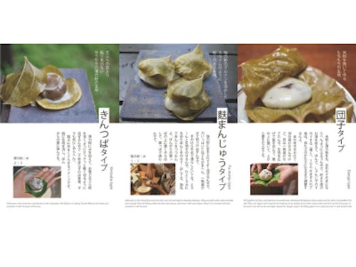 【団子タイプ】 「団子タイプ」の生地の作り方は、粉(こう)にな、お湯を加えて、ほんで、しゃもじでカイカイする(掻く)。耳たぶのかたさになるまで調整するんよ。ぬれ布巾をかけて30分寝かせるんやけど、昔は一晩寝かせてたんや。生地を広げて餡を包んで、葉の上に置いて、上から葉をかぶせてな。