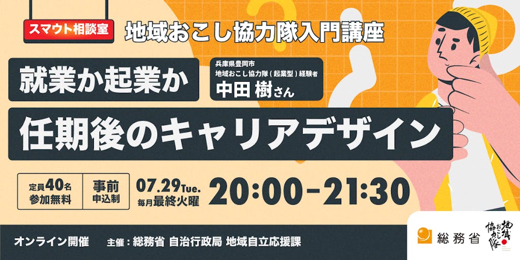 7/29 地域おこし協力隊 入門講座 〜就業か起業か|任期後のキャリアデザイン〜