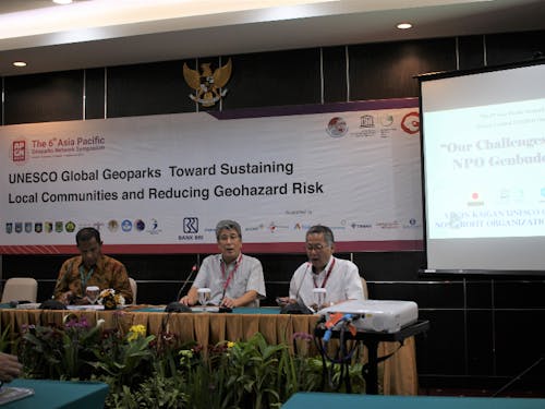 玄武洞ガイドクラブは、ジオパークの全国大会やアジア太平洋地域ジオパークシンポジウムなどへ参加して事例発表を行うこともあります。 また、台湾・台北市の野柳ジオパークのガイド団体と姉妹提携を結ぶなど、国内はもとより国際的にも広く交流を図りながら、ジオパーク活動を展開しています。
