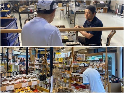 行程⑤ 燕市の分水地区も生活環境を見学にいきました。分水地区では自然の多さと道の広さ、車通りの少なさなど地方ならではの良さを体感していただきました。途中に雨が降ってきてしまいましたが、大河津分水路を見て、「これを人が作ったとは信じがたい!」と感動していました!そのあとは道の駅SORAIRO国上に行き、物産のお土産などを見て、お酒やお肉を購入しました!道の駅に売られている野菜やお肉の安さに驚いていました!