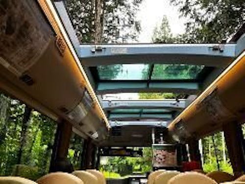 全国でも数少ない開閉式の天窓がついているマイクロバスが、1日8便運行します。 天窓を開けて、爽やかな風と季節を感じながら、駒ヶ根市の美しい景色を存分にお楽しみいただけます。 予約不要ですので、お気軽にご利用ください。