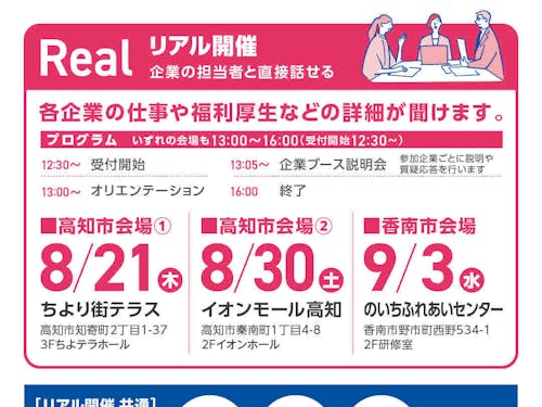 【8/21、8/30、9/3・高知】自分に合った企業が見つかる!JOBフェア2025