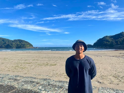 ④地域おこし協力隊 神保さん 中学生くらいの頃から“島に住んでみたい”という憧れがあったという神保さん。 何も行動することなく社会人になったある日、このまま何もせず30歳になっていいのか?と思いたったその場で、移住先を探したそうです。そこで見つけた高知の移住フェアへ足を運び、東洋町と出会いました。