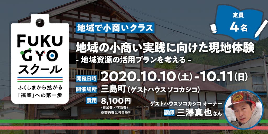 2020/10/08ふくしまでの起業、副業、家族移住のはじめ方&関わり方を学びませんか? \2020年9月開講「FUKUGYOスクール」のフィールド講座募集開始/