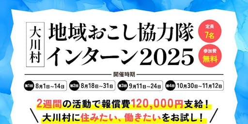 【雇用形態・期間】 (1)パートタイム会計年度任用職員として、大川村長が任命。 (2)期間は令和7年度の任命日から令和8年3月31日までとする。 (3)活動に取り組む姿勢・成果等を考慮して年度単位で更新することとし、最長3年間まで公募によらない再度の任用を行う場合があります。