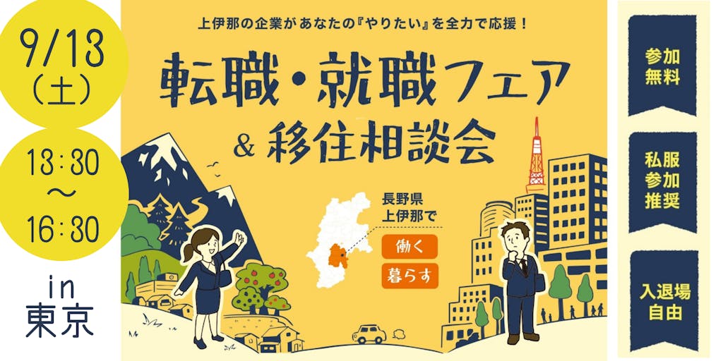★長野県上伊那で暮らす働く★ 9/13(土) in東京! 転職・就職フェア&移住相談会