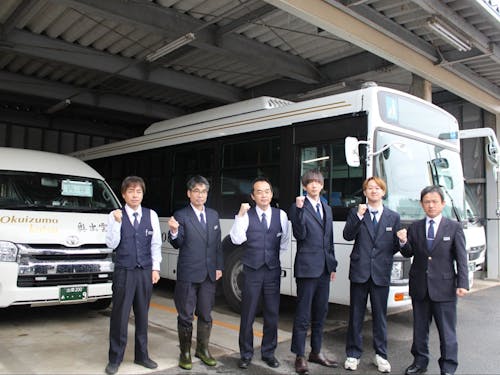 〈一緒に活動する仲間たち〉 地域公共交通ネットワーク化推進員は、奥出雲交通株式会社と雇用契約を結び、奥出雲交通株式会社の社員と一緒に勤務します。先輩運転手が運転スキルの向上をしっかりサポートします。