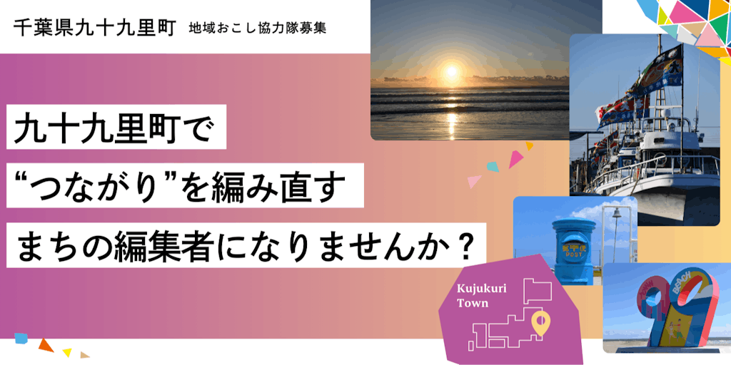 今回、九十九里町では、地域の人と人、行政と住民と町外からのゲストをつなぎながら、九十九里の価値を発信する地域おこし協力隊を募集します。