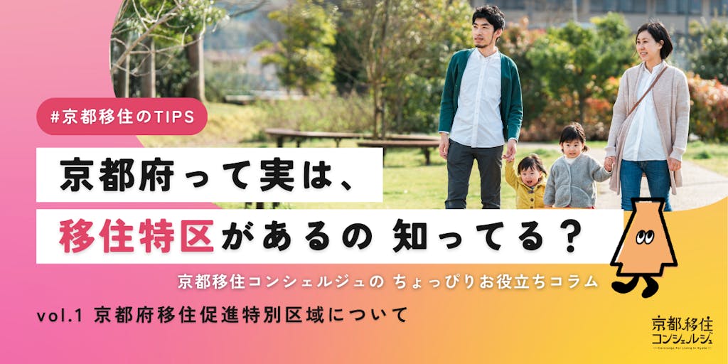 ▼条例について https://www.pref.kyoto.jp/kikakuriji/ijujorei.html ▼移住促進特別区域について https://www.kyoto-iju.jp/iju_area/ ▼自分に合った移住促進特別区域を知りたいという方は、京都移住コンシェルジュまで! https://www.kyoto-iju.jp/howto/counter/