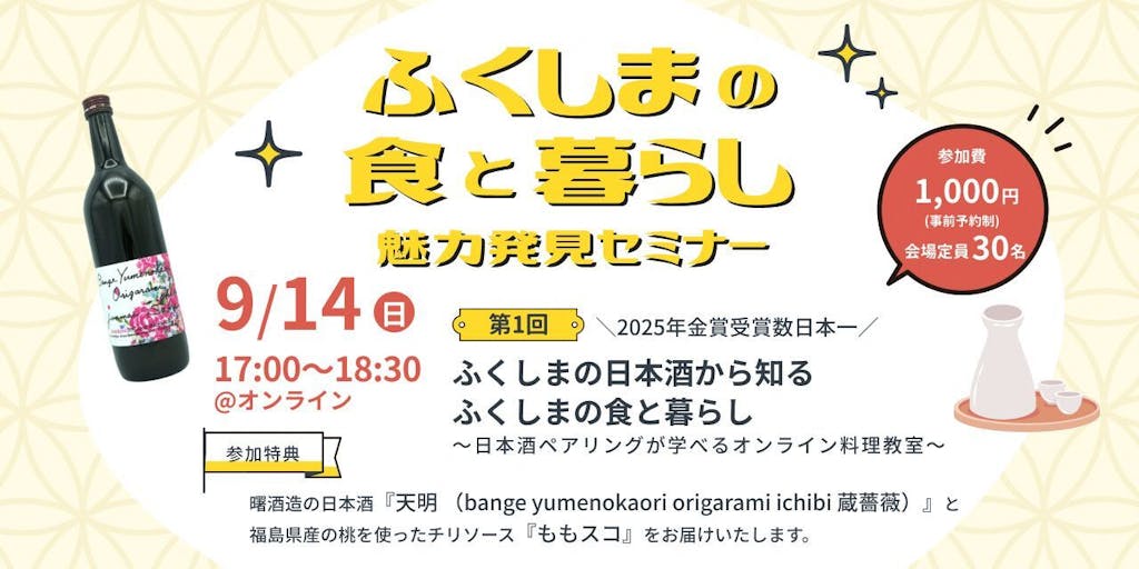 ふくしまの食と暮らし魅力発見セミナー ふくしまの日本酒から知るふくしまの食と暮らし ~日本酒ペアリングが学べるオンライン料理教室~