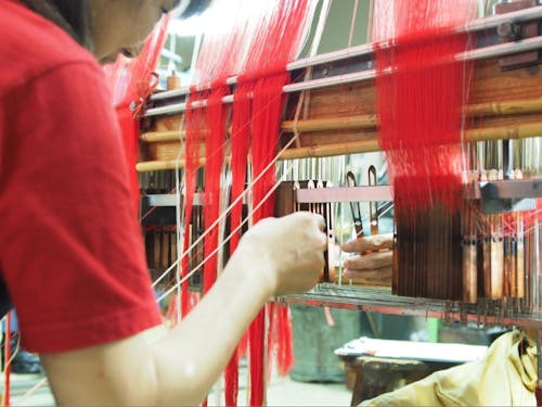 糸から布を織る「織布工程」の中で行う、1本の大きな糸を5本の小さな糸に分けるといった糸割り作業。織機オペレーターとして製品の傷や不具合がないかのチェック作業。そして、仕上げ工程では、糸くずを取り除く、仕上げ作業も体験可能です。