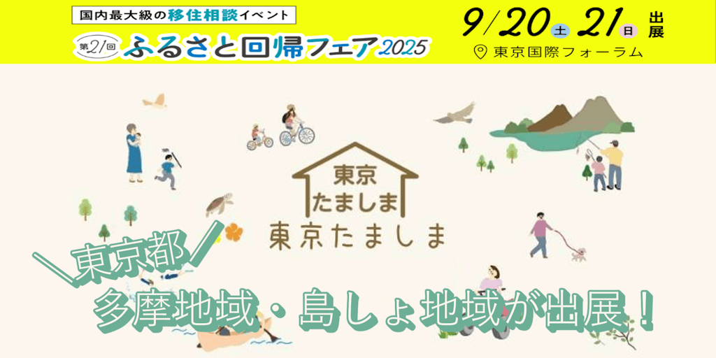 9月20日(土)・21日(日)に東京国際フォーラムで開催される国内最大級の移住フェア「ふるさと回帰フェア2025」へ、 東京都(多摩島しょ地域)も参加します!
