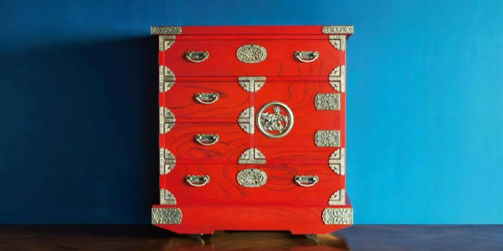 その大川市で明治40年から家具をつくり続けているのが「境木工」です。看板商品の「吉野民芸タンス」は、釘を一切使わない丈夫な蟻組工法、鍵のかかる「からくり」や、底板の「かくし」など、伝統の技が随所に光る逸品です。