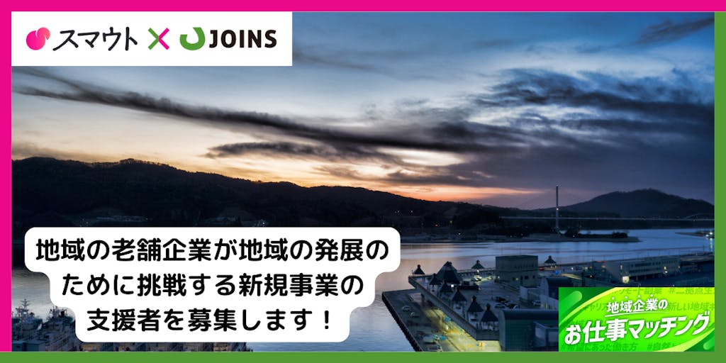 SMOUTの運営チームとタッグを組み、地域おこし協力隊やローカル起業に加わる地域で働く選択肢として、地域の企業への転職やリモート副業をサポートする「地域企業のお仕事マッチングサポート」を行っています。 https://lp.smout.jp/job-matching-joins