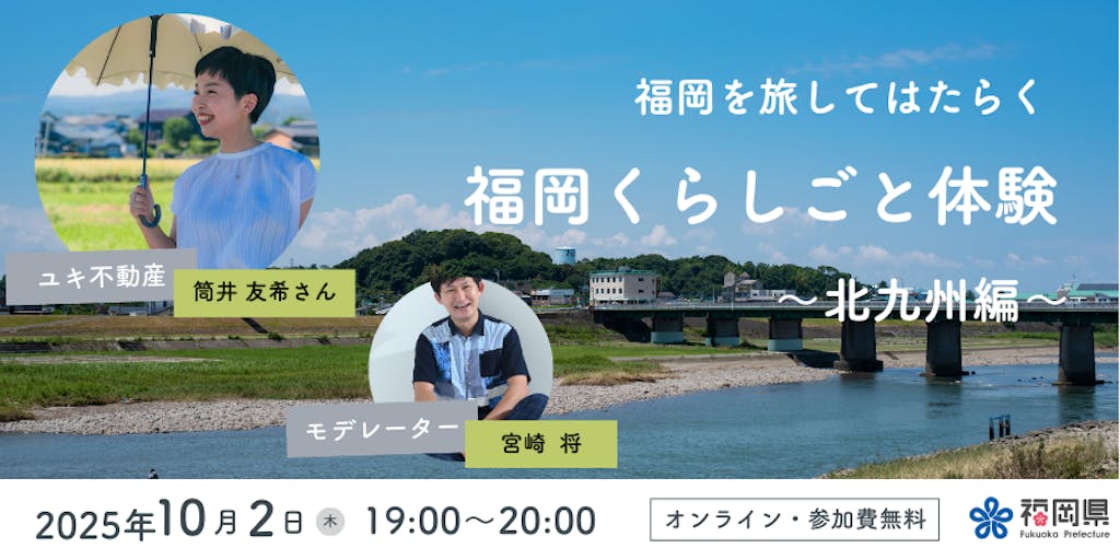 今年度は受入先も増え、これからたくさんの方々に体験いただくにあたり、今回福岡くらしごと体験の北九州エリア・豊前市の受入企業をゲストに、オンラインイベントを開催します。 福岡各地にどんな地域や活動があるのか、今回どんなプログラムや体験ができるのかを、オンラインにてお話ししながら、福岡ならではの地域の活動や面白さについて、ゲストとともに考えます。気に入った内容が見つかれば、ぜひ、福岡にお越しください。