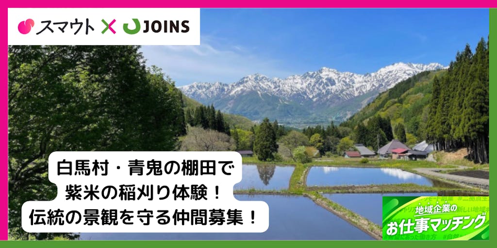こんな方に特におすすめしたいイベントです。 ・農作業に関心があり、実際に体験してみたい方 ・伝統的な棚田の風景や文化を守る活動に参加してみたい方 ・観光ではなく「暮らし」に触れる体験を求めている方 ・白馬村にゆかりをつくりたい、将来の二地域居住や移住を考えている方
