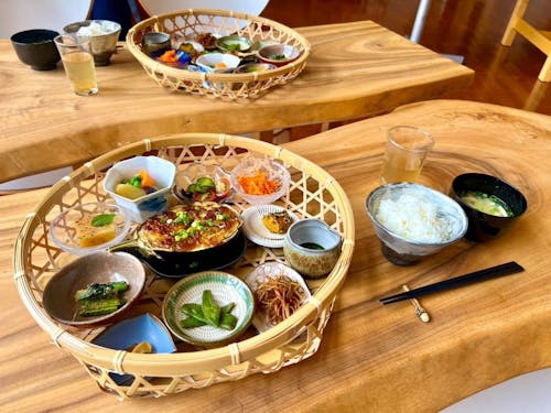 また、アーユルヴェーダ医学に基づいた「食の体験」を堪能することもできます。嘉麻市でとれた旬な野草や野菜、果物を使った“五感と感性の六感を刺激する”食事は、心と身体を整えてくれるはずです。