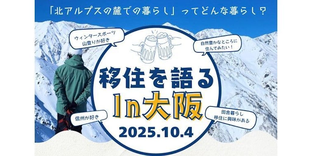 関西から北アルプスの麓に移住したウインタースポーツスキの30代夫婦をパネリストとし、北アルプスの麓での暮らしの魅力をお伝えします!