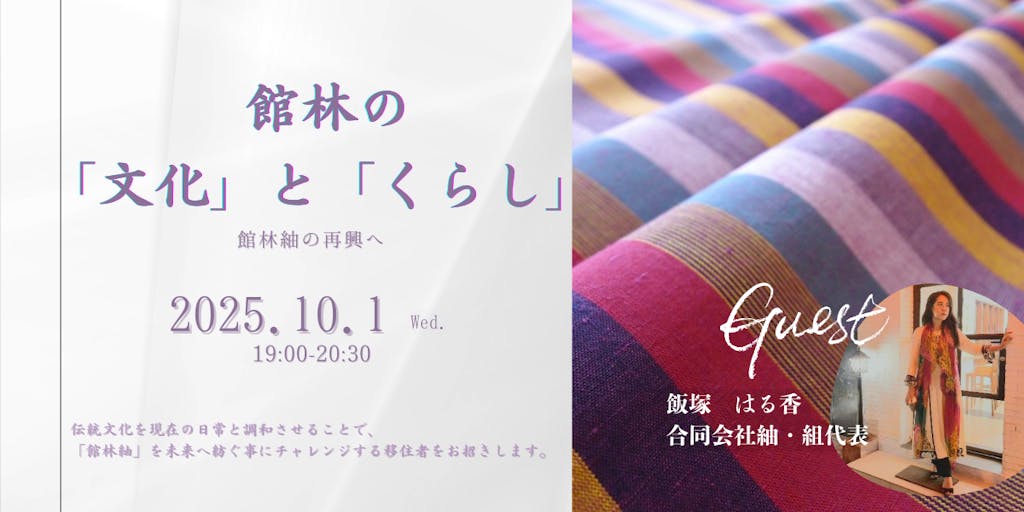 【10月1日(水)19:00~|オンライン】 館林市×群馬県 館林紬の再興へ~館林の「文化」と「くらし」