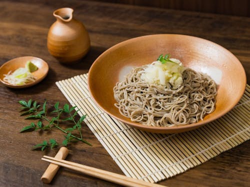 さらに、米原の食もぜひ味わっていただきたい魅力のひとつです。特に「伊吹そば」は、この地域ならではの郷土の味。香り高く素朴な風味のそばは、土地の自然と歴史が育んだ自慢の一品です。2019年9月9日、生産地と結びついた特色ある産品の名称を保護する仕組みである、地理的表示(GI)保護制度に「伊吹そば」(農林水産大臣登録第85号)が登録されました。地元の生産者が、交雑を防ぎながら守り続けてきた在来種「伊吹そば」を味わえるお店は市内にたくさんあります。ぜひ国スポ・障スポ期間中にご賞味ください。他にも、地元食材を使った料理や琵琶湖の湖魚料理も豊富にあり、観戦の思い出をさらに彩ってくれます。