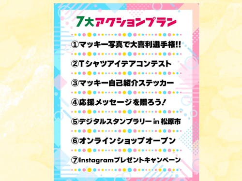 このたびマッキーの挑戦を盛り上げるべく、7つのアクションプランを発表!詳細は以下をご覧ください。