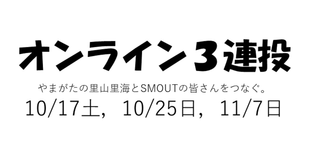そこでもはや「発信」しまくろうということになり,オンラインイベント3連投いたします。Zoomで僕らが今やってること発信して,SMOUTでつながったみんなからいろいろ聞いてみたいと思います。