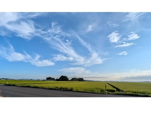 お米の一大産地である登米市は 美味しいお米、野菜、果物などがたくさん採れる、自然が豊かな場所です。広大な田んぼや畑が続き、山が遠く、空を大きく感じることができます。