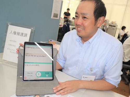 なのでポルトガル語以外の言語にも対応するために、翻訳という道だけではなく、たとえばひらがなやふりがななどを用いた「やさしい日本語」を使ったり、市民対応でも自動翻訳機を使って対応したりなどより合理的な方法を模索している最中です。 また、人権擁護課ということもあり、外国人の人権に関する啓発についても担っています。