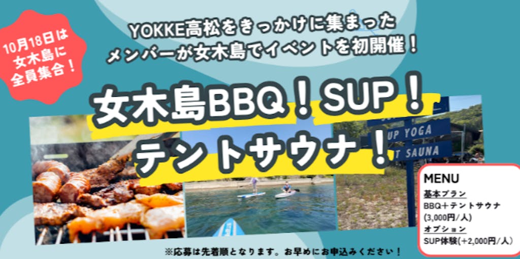 女木島でBBQ!SUP!テントサウナ! 島の自然を体験しながら交流しよう♪