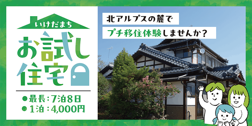 お試し住宅で、北アルプスの麓でプチ移住体験しませんか?