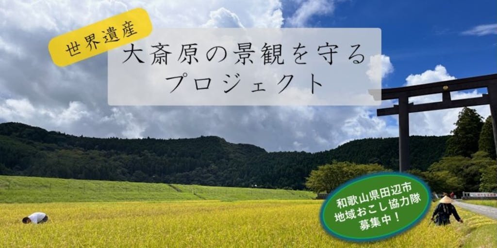 2025/11/09田辺市は、和歌山県中南部の海・山・川の自然に恵まれた人口約67,000人の近畿で一番広いまちです。現在6名の地域おこし協力隊が田辺市内の各地域で地域活性化のために地域住民と一緒になって活動しています。 今回はあらたに田辺市本宮地域で、世界遺産・大斎原の景観を守るために様々な活動をしている株式会社山里舎の皆さんと一緒に活動していただける地域おこし協力隊を募集します!