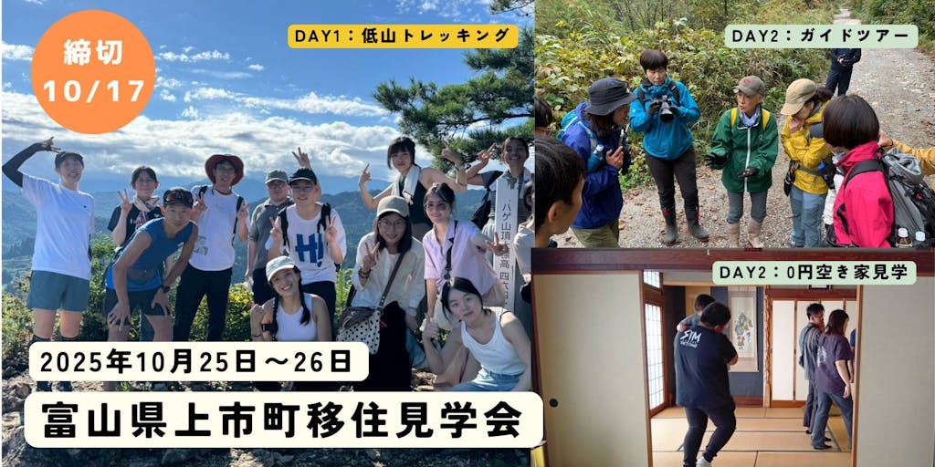 2025/10/15登山とアウトドアを愛する人の「山麓移住」を応援する取り組みとして、山と溪谷社が開催している「移住見学会」。今年は、富山県上市町での移住見学会が2025年10月25日(土)~26日(日)に開催されます。応募締め切りは10月17日(金)です。