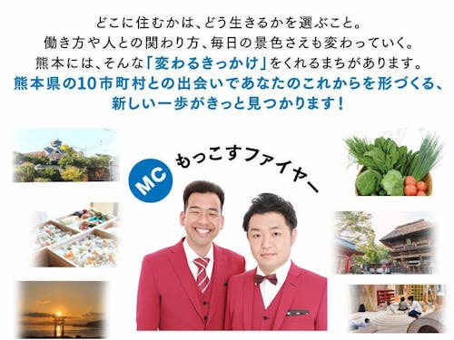 熊本には、そんな「変わるきっかけ」をくれるまちがあります。熊本県の市町村との出会いであなたのこれからを形づくる、新しい一歩がきっと見つかります!熊本県の移住相談イベントにぜひご参加ください!