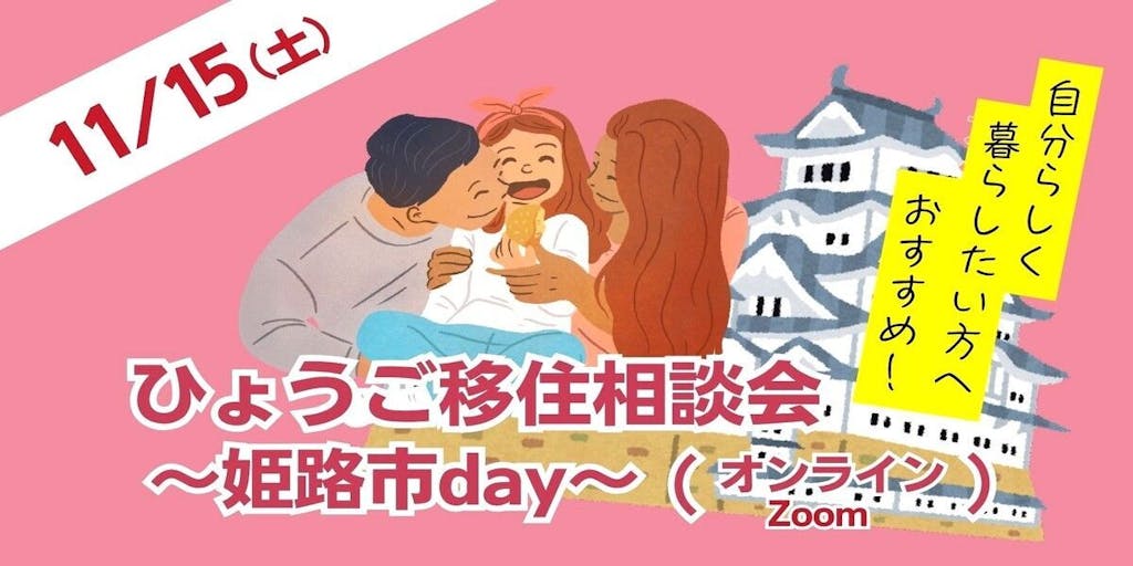 ■日程:令和7年11月15日(土) ■開催時間:11:00~18:00 ※1枠45分(目安) ■開催場所:会場参加もしくはオンライン参加 ⭐会場参加の場合…東京交通会館8階ふるさと回帰支援センター(東京・有楽町) ※ふるさと回帰支援センター内「ひょうご移住・しごとプラザ」でご相談をお受けします。 ⭐オンライン参加の場合…WEB会議システム「Zoom」 ※当日のZoomURLは、ご予約日時確定後にメールでご連絡いたします。 ■定員:先着6組様(完全予約制) ①11:00~11:45 ②12:00~12:45 ③14:00~14:45 ④15:00~15:45 ⑤16:00~16:45 ⑥17:00~17:45 ■参加費:無料 ※ご自宅からご参加の場合、通信料は自己負担となります。