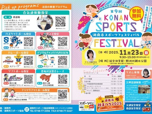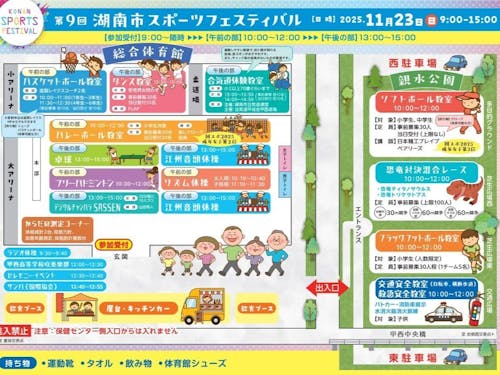 【日時】11月23日(日)午前9時~午後3時 【場所】湖南市総合体育館・野洲川親水公園(〒520-3223 滋賀県湖南市夏見589番地)