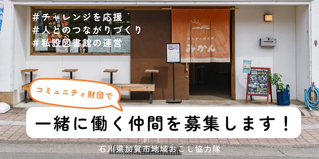 2025/11/13石川県加賀市の「コミュニティ財団」で、図書館の運営、地域でのチャレンジ応援、人とのつながりづくりをおこなう、地域おこし協力隊を募集します!
