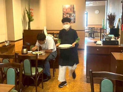 ———— 営業形態はその頃と同じですか? 店の雰囲気は同じです。少し暗い感じの照明に、バックグラウンドミュージックはバロック音楽。バロックは単純に私の趣味です。営業時間は当初、午後10時ごろまでやっていました。かなり忙しかったです。メニューもほぼ変えていません。とにかく、「安くて、美味しくて、量がある」をモットーに長年やって来ました。